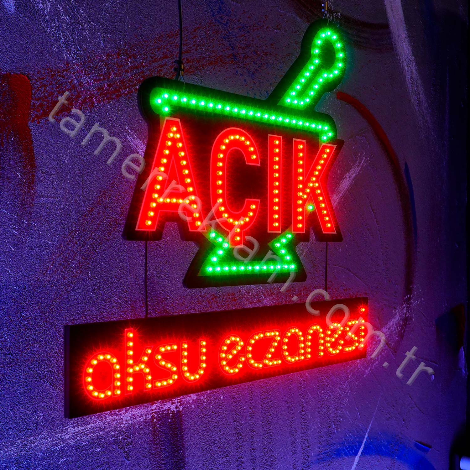 Aksu Eczanesi Havan Figürlü Açık Led Tabela