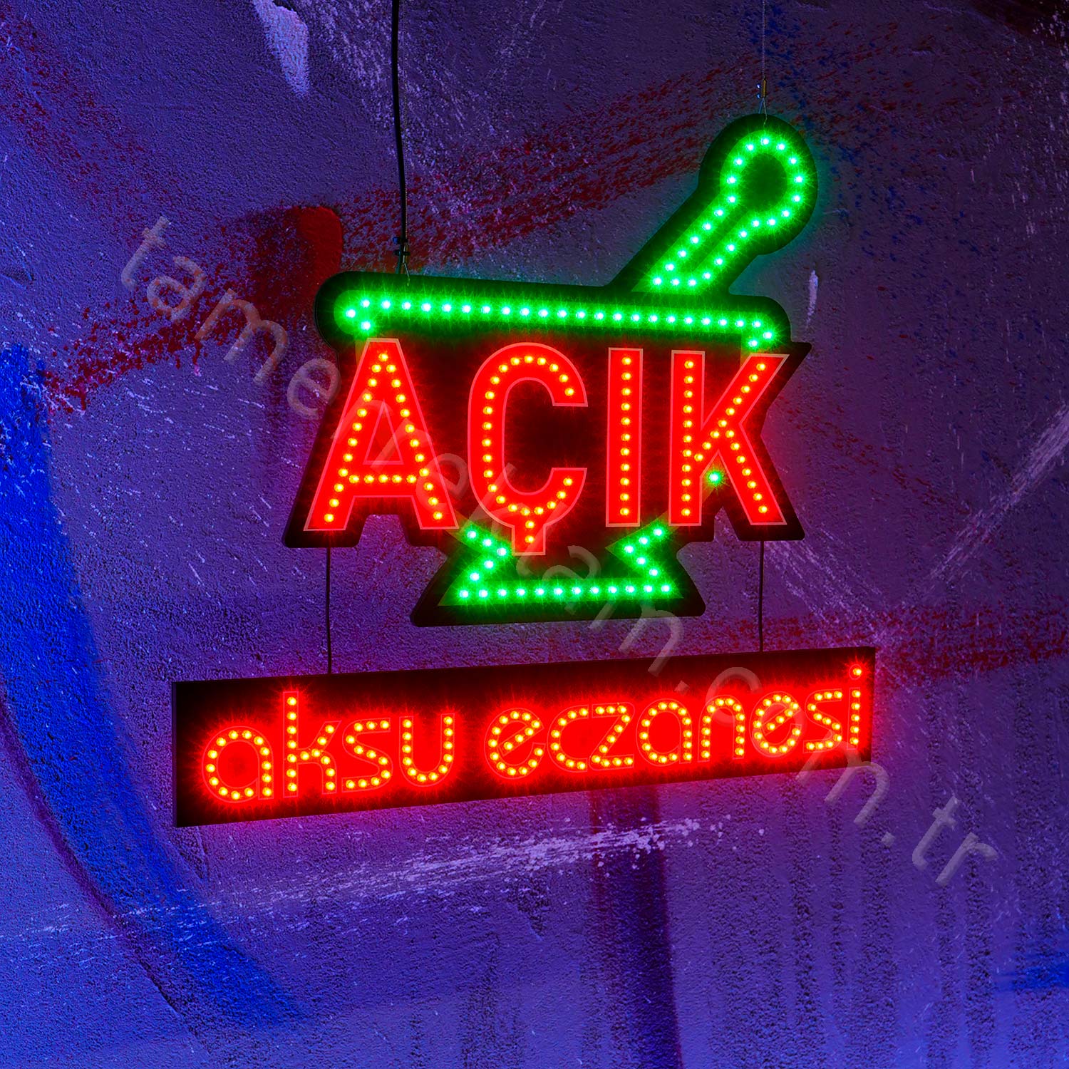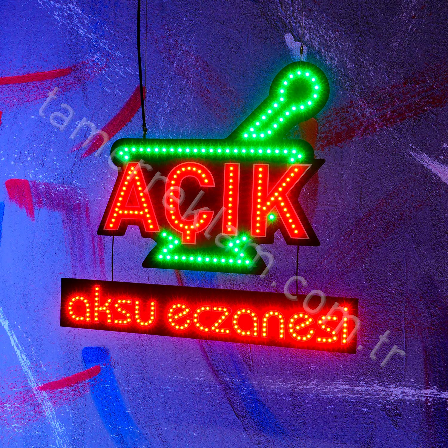 Eczane İsimli Açık Tabelası Havan Figürlü Led Tabela